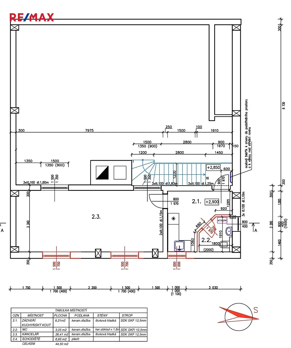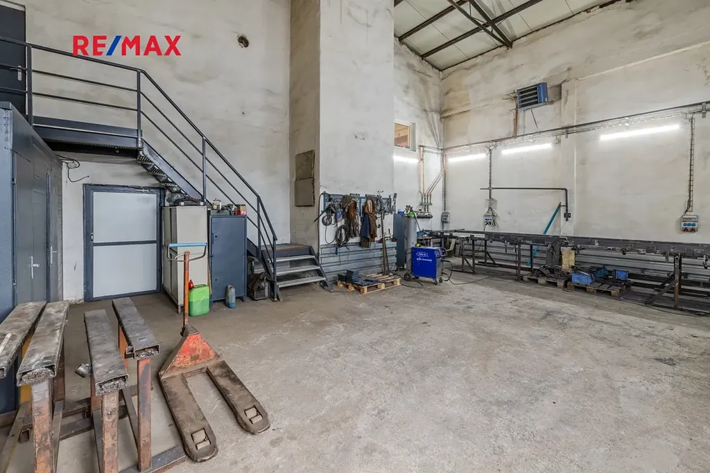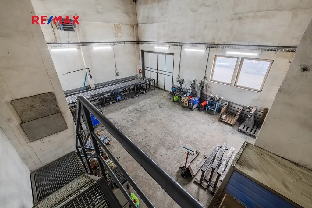 • kancelář v patře (38 m²) s vlastním WC a kuchyňkou