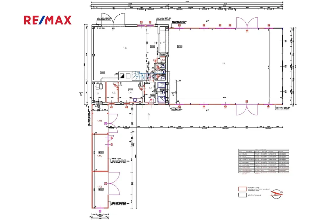 • zázemí 1. NP (šatny, sociální zařízení, kuchyňka): 38 m²