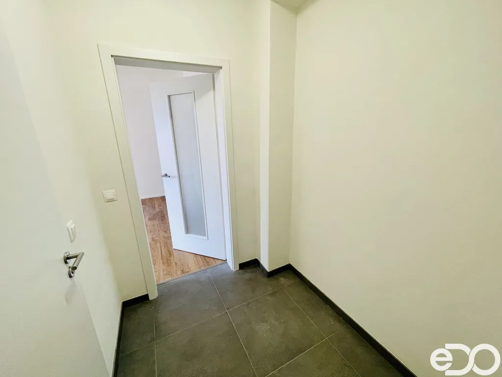 Bytovou jednotku tvoří předsíň, obývací pokoj s kuchyňským koutem, ložnice a koupelna se sprchovým koutem a toaletou. Kuchyňská linka je vybavena sklokeramickým sporákem a digestoří. Lednici s mrazákem je možné po dohodě odkoupit od současného nájemce. Jednotka se pronajímá nezařízená nábytkem. Podlahy jsou vinyl a keramická dlažba, vytápění je centrální a je řešeno plynovým kotlem, který se nachází v suterénu domu. Byt i dům je vybaven nadstandardními možnostmi. Ovládání teploty je možné ručně přímo v bytě nebo vzdáleně přes PC nebo telefon, vynikající mezibytová zvuková izolace, bezpečnostní vchodové dveře do bytu, nový výtah, bezpečnostní kamerový systém v domě, videotelefon. V domě je možné za menší poplatek využívat také prádelnu, kde se nachází pračka i sušička.