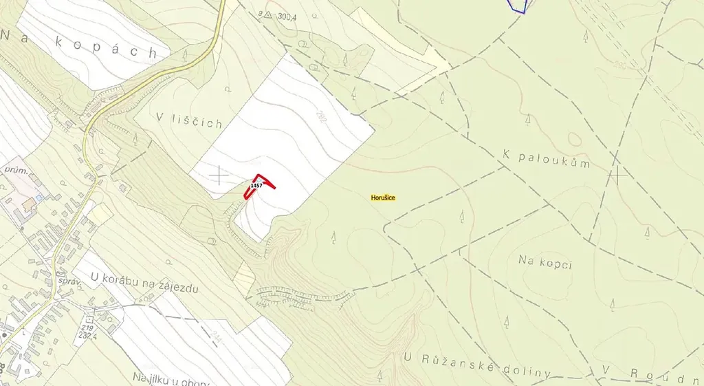 Nabízíme k prodeji atraktivní pozemek p.č. 1457 o výměře 1 029 m2 v katastrálním území Horušice. Pozemek je ve výhradním (100 %) vlastnictví (LV č. 10135). Nachází se v klidné části katastru a díky okolním sadům a lesům je zajímavým místem k umístění včelstva. Nepropásněte příležitost ke koupi pozemku v tomto katastru.