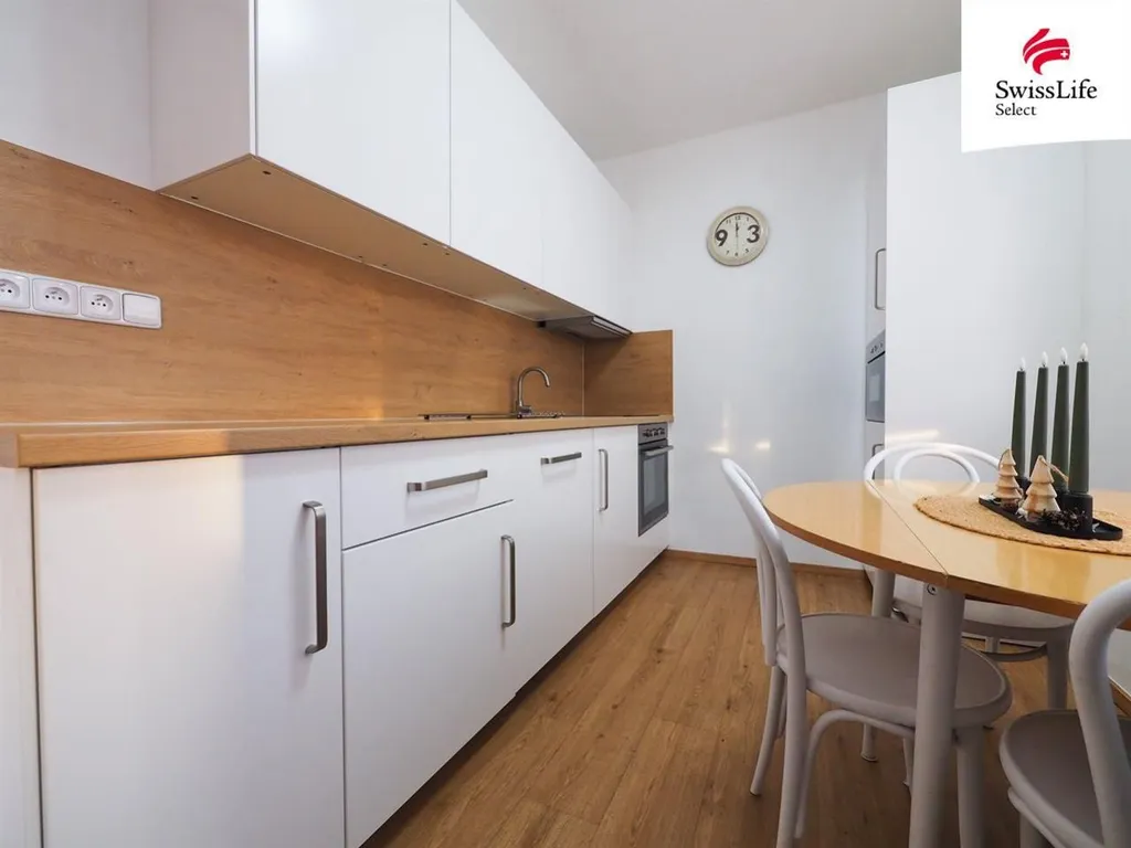 Nabízíme k dlouhodobému pronájmu byt v osobním vlastnictví o dispozici 2+KK (se zasklenou lodžií) situovaný v 7. nadzemním podlaží osmipodlažního zděného domu (s eurovýtahem). Díky jihozápadní orientaci oken směrem do klidného vnitrobloku se jedná o tichý a slunný byt. Celková podlahová plocha bytové jednotky včetně příslušenství je 57 m2. Příslušenstvím bytu je sklep umístěný v 1. nadzemním podlaží domu. Dispoziční řešení bytu: předsíň, kuchyňský kout, obývací pokoj, ložnice, koupelna a samostatné WC, komora. Byt je po výrazné modernizaci zahrnující rekonstrukci bytového jádra (nové rozvodové sítě, kuchyňská linka včetně elektrospotřebičů, nové sanitární vybavení/keramické obklady/dlažba, nová podlahová krytina v kuchyni - lino), elektrorozvody v celém bytě, částečně nové štukové omítky, interiérové dveře, osvětlení. Bytový dům prošel komplexní revitalizací: rekonstrukce střechy, výměna oken a vstupních portálů, zateplení obvodového pláště budovy (kontaktní zateplovací systém se strukturální omítkou), přístavba lodžií, výměna domovních rozvodů. Ústřední dálkové vytápění a ohřev teplé vody s centrálním zdrojem horkovodem. Poloha domu v centrální části městské zástavby s optimální dostupností služeb (MŠ, ZŠ, gymnázium, SPŠ, dětské hřiště, relaxační centrum, síť obchodů a služeb, MHD).
