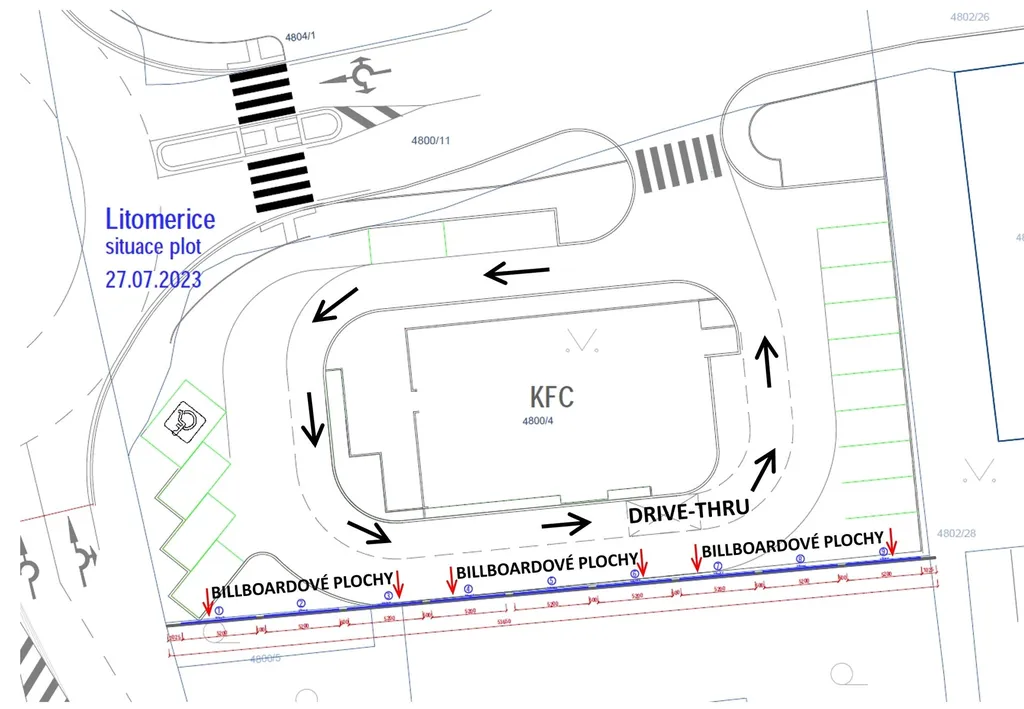 Nabízíme dlouhodobý pronájem reklamních ploch u obchodní zóny v Litoměřicích. Billboardové plochy se nacházejí přímo u nově otevřené provozovny fast food restaurace KFC s Drive - Thru.