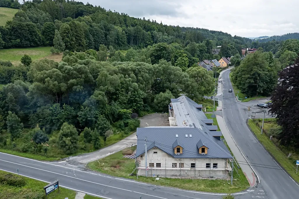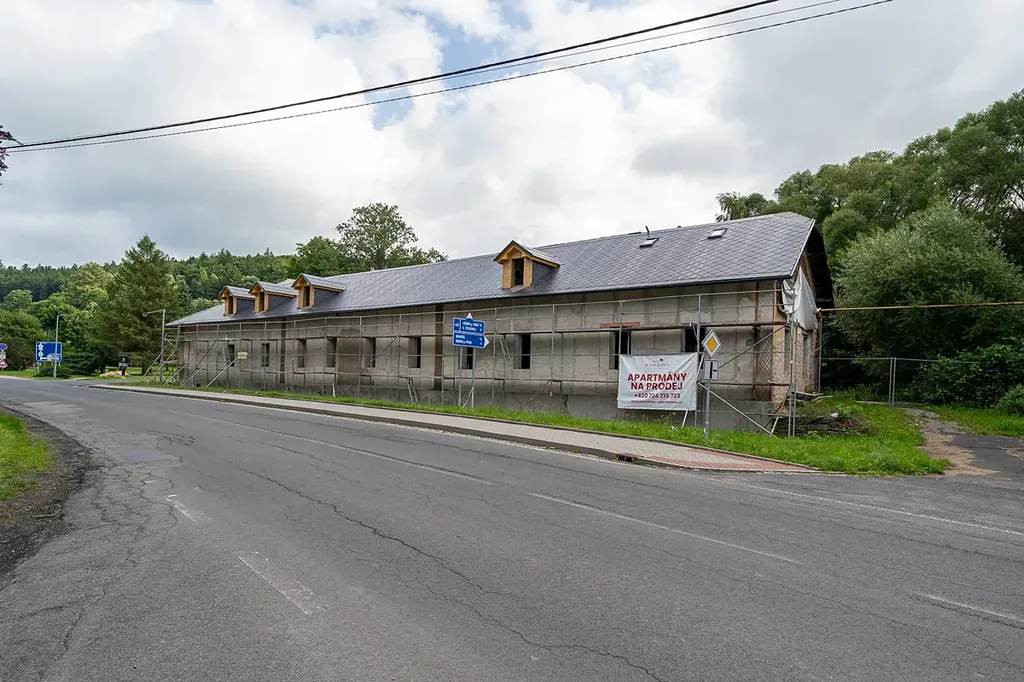 Apartmánový dům vznikne rozsáhlou rekonstrukcí původního objektu a bude přestavěn na moderní apartmánové bydlení ve venkovském stylu s jemnými dekorativními prvky.