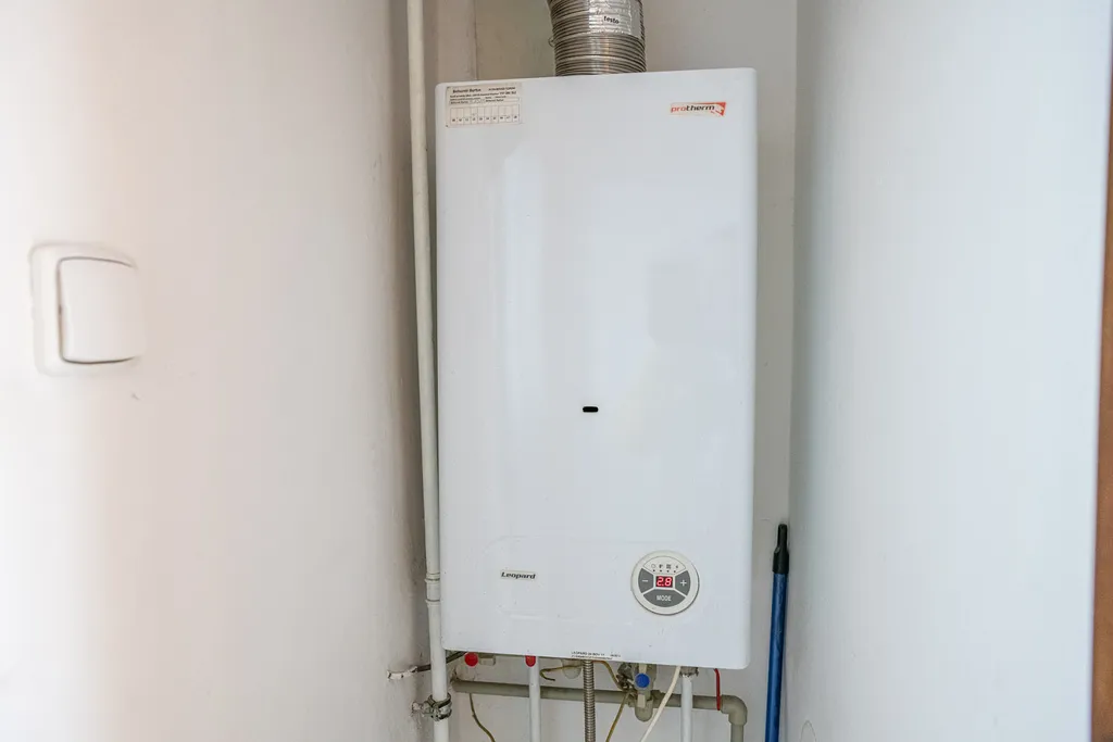 Vytápění i ohřev vody zajišťuje plynový kotel, který je umístěn v samostatné části bytu.