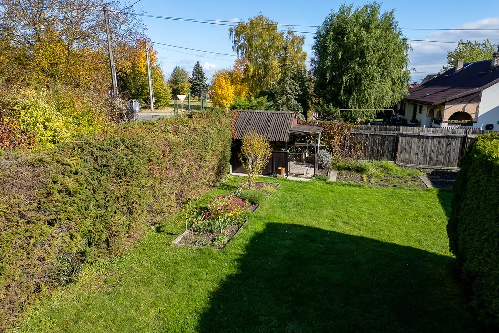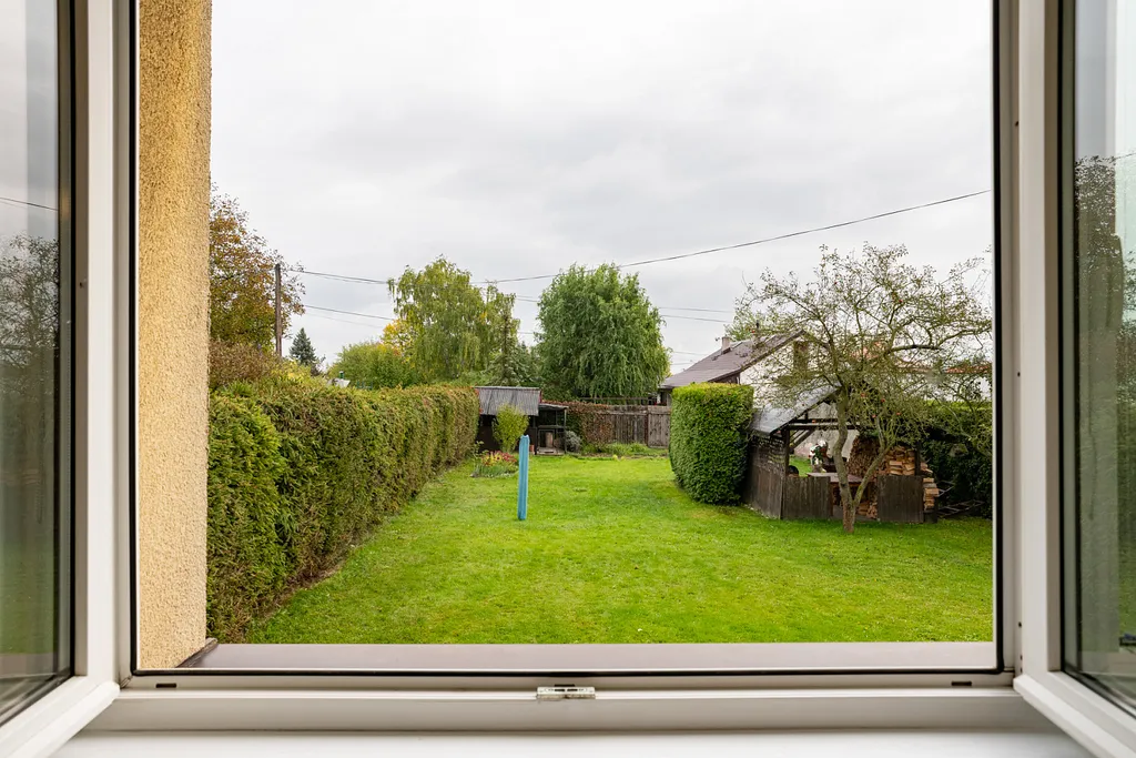 A skutečným bonusem je oplocená zahrada s posezením, kde si můžete užít odpolední kávu, grilování nebo čas s dětmi.