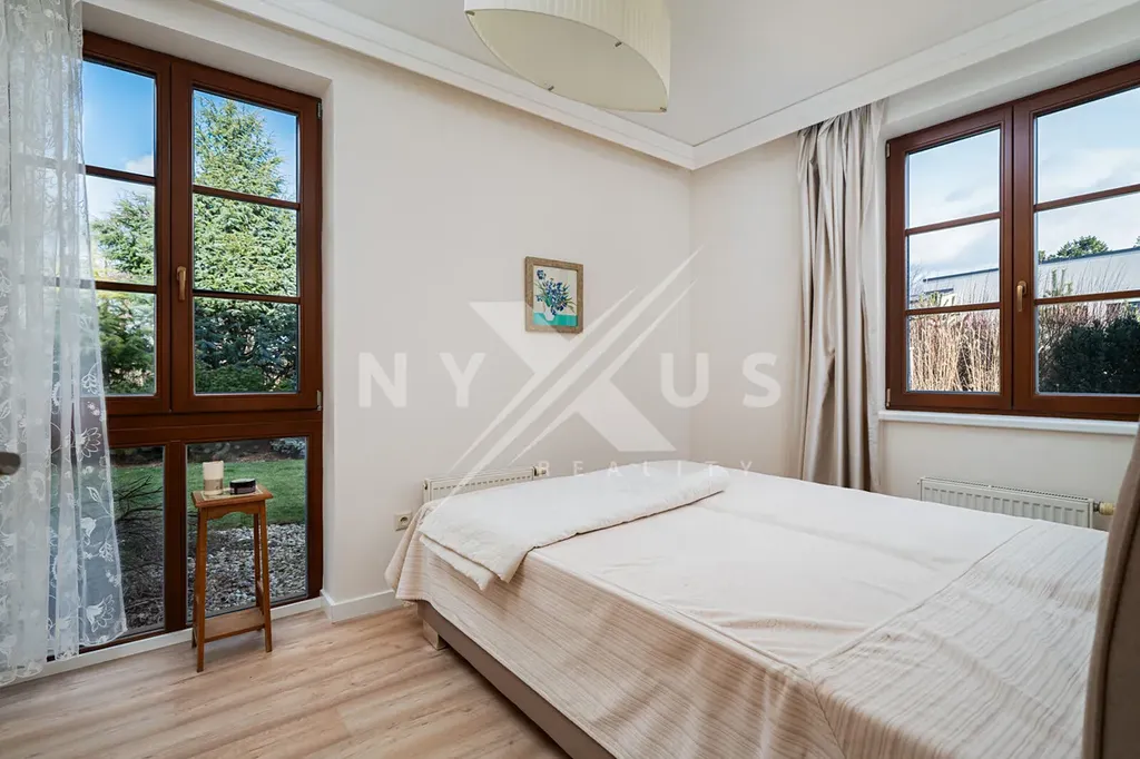 Plynové vytápění je kombinováno s elektrickými vyhřívanými podlahami a krbem. Dřevěná okna, dřevěné plovoucí podlahy, v koupelnách pak na podlahách dlažba. Klid bydlení zajistí zabezpečovací systém Paradox.