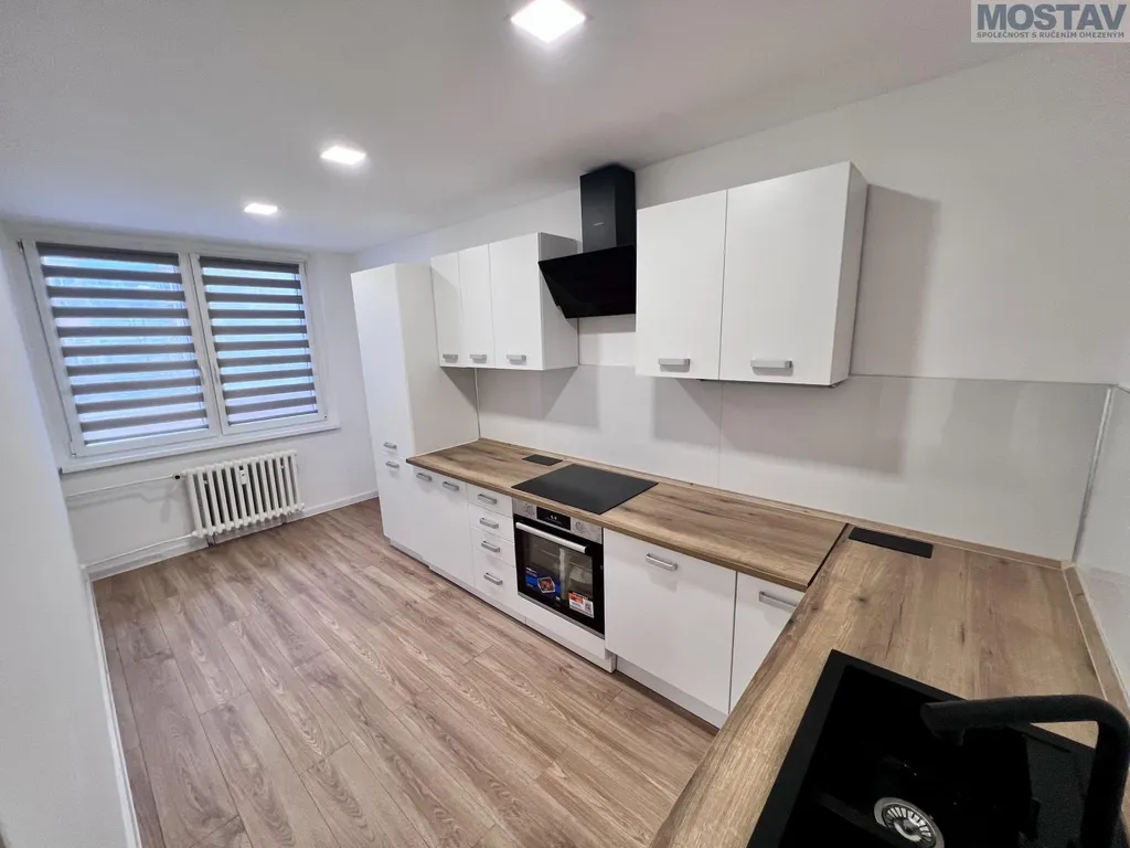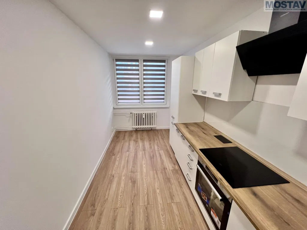 Byt prošel kompletní a kvalitní rekonstrukcí nové podlahy, štuky a výmalba, zděné bytové jádro, moderní koupelna se závěsným WC, snížené stropy v koupelně, předsíni, kuchyni i obývacím pokoji. Součástí je nová kuchyňská linka včetně vestavěných spotřebičů a myčky. Dále nové interiérové dveře s obložkami, kompletně nové rozvody elektřiny a odpadů, nové vypínače a zásuvky, žaluzie den, noc a další.