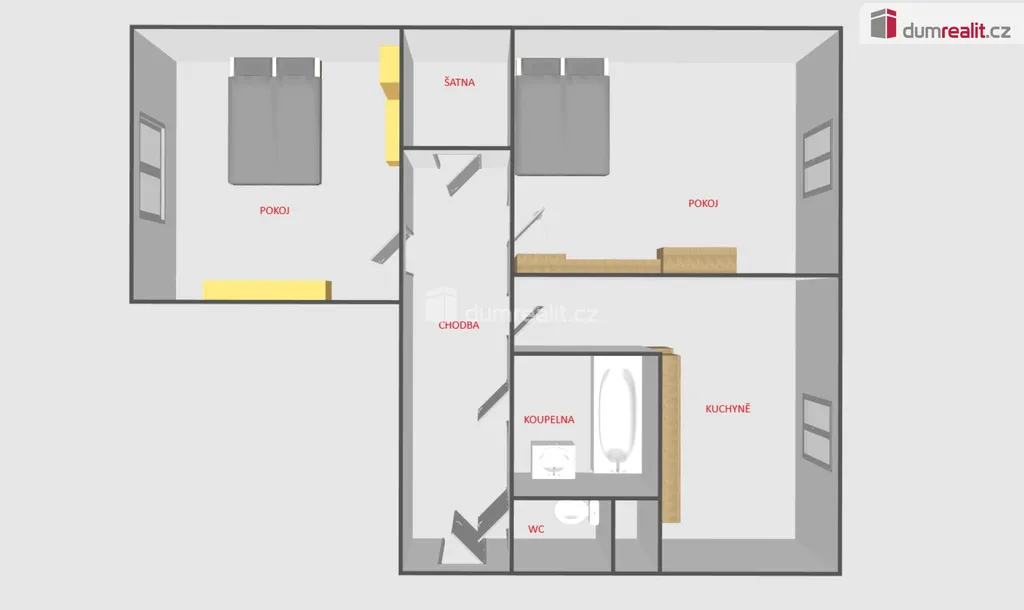 Koupelna s vanou, samostatné WC.