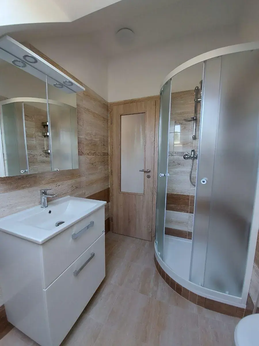 Jedná se o kompletně zařízený byt o celkové ploše 40 m², situovaný v 1. patře rodinného domu po kompletní rekonstrukci. Byt je vybaven všemi potřebnými spotřebiči a je velmi světlý a vzdušný. Dispozičně nabízí obývací pokoj s kuchyní, ložnici a koupelnu se sprchovým koutem a toaletou.