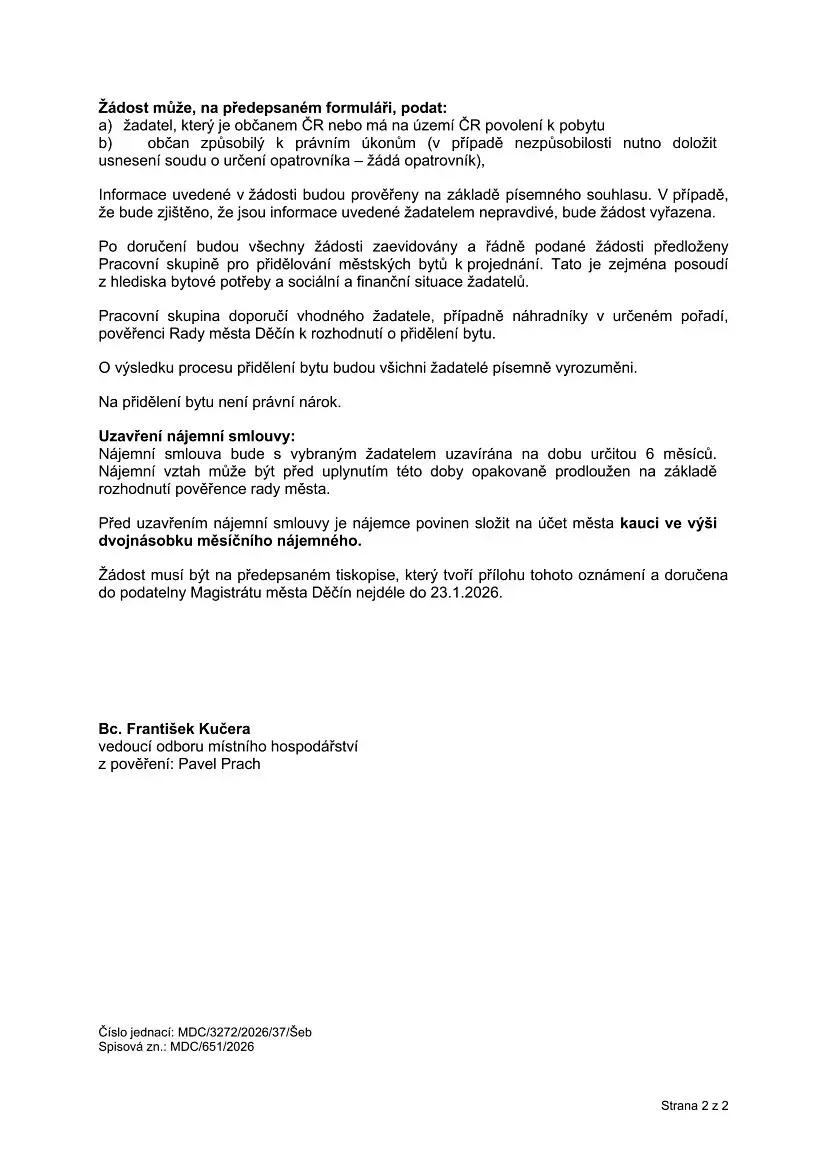 Statutární město Děčín nabízí k pronájmu byt v dispozici 1+1 v objektu Mírové náměstí 242, Děčín IV ve 4. nadzemním podlaží výměře 39,68 m2 ve vlastnictví statutárního města Děčín, v centru obce a v dosahu veškeré infrastruktury. Byt je dálkově vytápěn.