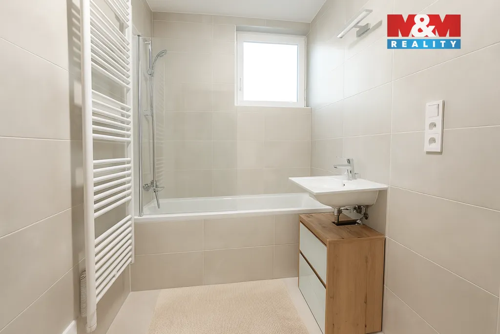 Byt je proveden ve vysokém standardu – vinylové podlahy, obložkové zárubně s dveřmi CPL, kvalitní obklady a dlažby, kompletně vybavená koupelna. Dispozice nabízí vstupní chodbu, ložnici, dětský pokoj, koupelnu s vanou, samostatné WC a obývací pokoj s kuchyňským koutem. Z obývací části je vstup na balkón o velikosti 5,3 m². Kuchyňská linka je plně vybavena vestavnými spotřebiči – varnou deskou, troubou, digestoří, myčkou a lednicí. Do bytu je zavedena pozemní TV anténa a připraveny rozvody pro internet.