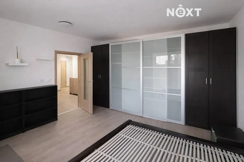 Ložnice o ploše 19,11 m² je vybavena manželskou postelí a prostornou šatní skříní a také vstupem na lodžii. Koupelna disponuje sprchovým koutem s hydromasážním panelem ASTREA, toaleta je vybavena bidetovou sprchou. Oba pokoje jsou orientovány na jižní stranu, což zajišťuje dostatek denního světla po celý den. Součástí bytu je sklep (1,95 m²) a vyhrazené parkovací stání ve vnitrobloku domu. Komfort bydlení dále zvyšují velká okna s trojskly, předokenní žaluzie a klimatizace. Byt je kompletně zařízený nábytkem.