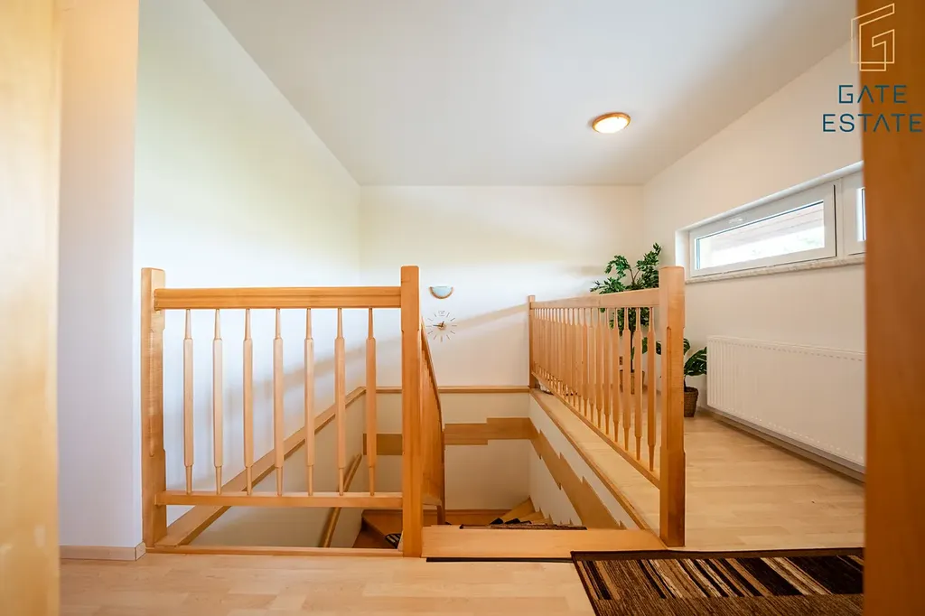 V patře se nachází čtyři neprůchozí pokoje, druhá koupelna s vanou i sprchovým koutem a samostatná toaleta, což poskytuje dostatek pohodlí i soukromí pro větší rodinu. Dům nabízí nadstandardní množství úložných prostor – hned u vstupu je praktická šatna, v horním podlaží pak šatní prostor s vestavěnou skříní a samostatná menší místnost, kterou lze využít jako šatnu nebo úložný prostor dle vlastních potřeb.