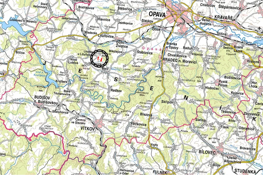 – Melč: parc. č. 429/4, 435/1, 437/2, 438/1, 467/2, 477/2