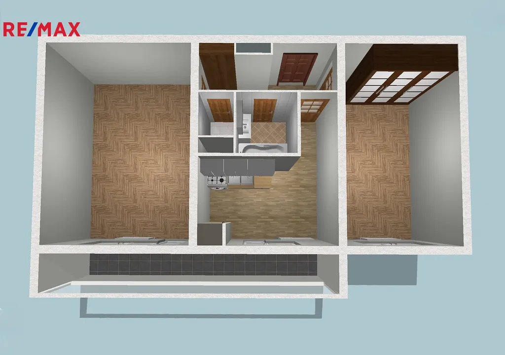 Byt je ve velmi pěkném stavu, k nastěhování od 01.02.2026. Podlahová plocha bytu je 45 m², k dispozici je prostorná, zasklená lodžie o výměře 7 m², spojující obývací pokoj a kuchyň.