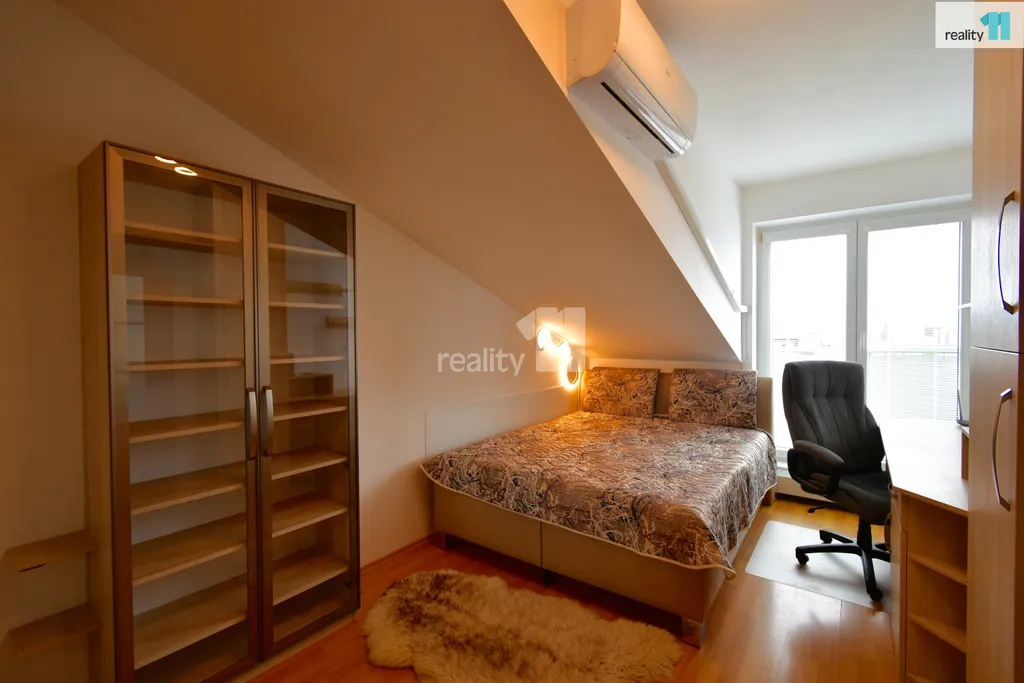 Nabídka pronájmu moderního, kompletně a nadstandardně vybaveného bytu 2+kk o výměře 50m² s balkónem (8m²). Byt je situován v posledním patře cihlové novostavby (bytového domu) z r.2007 (bez výtahu). Všechny bytové jednotky domu spadají do osobního vlastnictví. Celý dům vyniká velmi nízkou energetickou náročností. Interiér bytu: vstupní chodba bytu je vybavena prostornými vestavěnými skříněmi s velkým zrcadlem. Z chodby je vstup do: koupelny (vybavená pračkou LG) s WC; kuchyně s obývací místností a následně do ložnice. Z obou obývacích pokojů je možný vstup na balkón. Všechna okna jsou osazena žaluziemi. V obou balkónových dveřích jsou instalovány síťky proti případnému polétavému hmyzu (ve 4.patře je ho minimálně). Vybavení bytu: kuchyň - kuchyňská linka s vestavěnými el. spotřebiči značky BOSCH (digestoř, mikrovlnná trouba, varná deska, myčka, lednice). Přechod z kuchyně do obývací části tvoří pracovní stůl, který ze strany obývací je stolem jídelním s dvěma židlemi. Obývací část: obývací stěna, skříňky, sedací souprava, stolek, koberec. Ložnice s vybavením: velká třídveřová vestavěná šatní skříň s posuvnými dveřmi z lacobelu a zrcadlem, vestavěné skříně, prosklená skříň, manželská postel s úložným prostorem, pracovní stůl, klimatizace. Veškeré vybavení a zařízení bytu bylo pořízeno nebo vyrobeno na zakázku v období 2017-2022. TV kabel a internet: ano. Vytápění: ústřední plynové s napojením na plynový kotel pro celý dům + čerpadlo. Teplá voda: napojena na plynový kotel + čerpadlo. Ve společných prostorách domu lze využít kolárnu (kočárkárnu) a techn. místnost. Sklep byt nemá. K bytu náleží přiřazené venkovní parkovací stání (v ceně nájmu). Nemovitost se nachází v satelitní zástavbě moderními bytovými domy, a především v klidné části Úval u Prahy. Předností lokality je výborné spojení s centrem Prahy a i potřebný popracovní klid. Vlak do Prahy odjíždí v intervalech cca 15–20 minut. Doba jízdy: Masarykovo nebo Hlavní nádraží cca 25 minut, Úvaly-Libeň cca 18 minut. V návaznosti na vlakové spoje lze využít místní autobusovou dopravu (zastávka cca 4. min. od domu) v rámci PID. Úvaly nabízí plnou občanskou vybavenost. V pěším dosahu jsou obchody, obchůdky i centrum Úval. Finanční náročnost: nájemné 20.000Kč/měsíc, vratná kauce 2 čisté měsíční nájmy. Úvaly nabízejí luxusní a reprezentativní bydlení nejen pro náročné v klidné lokalitě vhodné pro všechny věkové kategorie jen kousek od Prahy. Preference: dlouhodobý pronájem pro nekuřáky a bez zvířecích mazlíčků. Nabízím prohlídku. Ev. číslo: 27019.