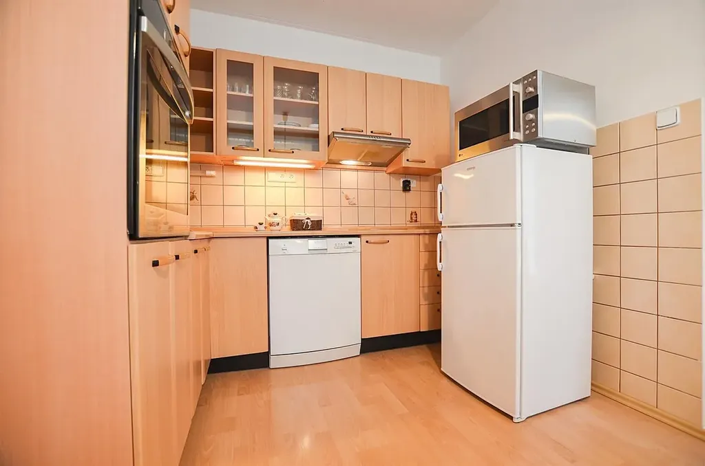 Byt je po rekonstrukci a v udržovaném stavu. Pronajímá se částečně vybavený: lednice, pračka, sedací souprava, obývací stěna, vestavěné skříně, jídelní stůl s židlemi atd.