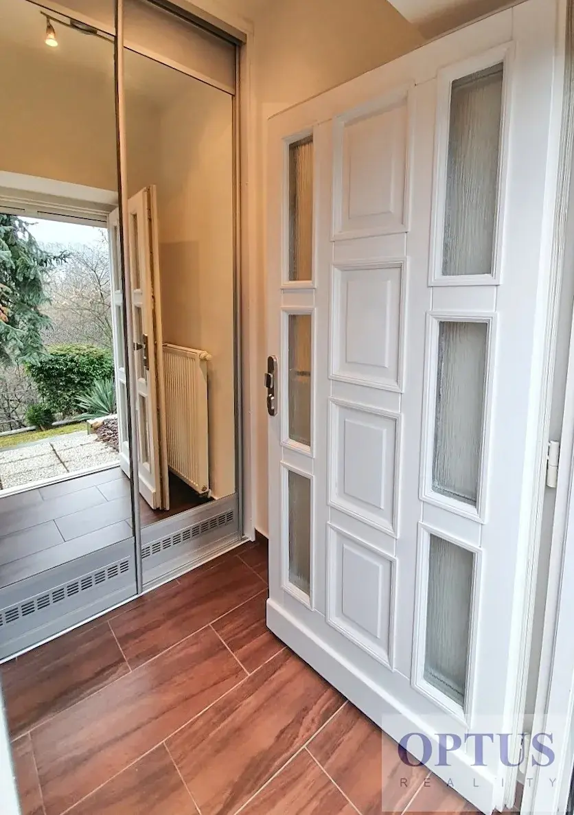 Nabízíme nový zařízený byt 1 + kuchyňský kout (o velikosti cca 24 m2) s výhledem do zeleně; byt se nachází v přízemí rodinného domu s vlastním vstupem – dům stojí v kopci cca 5 m nad úrovní ulice. Byt tvoří předsíň s vestavěnou skříní, pokoj s kuchyňským koutem vybaveným indukční varnou deskou (dvojvařič) a malou lednicí s mrazákem, koupelna se sprchou a toaletou.