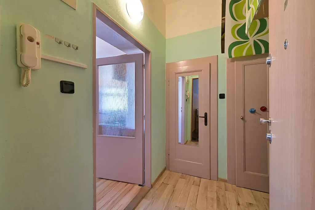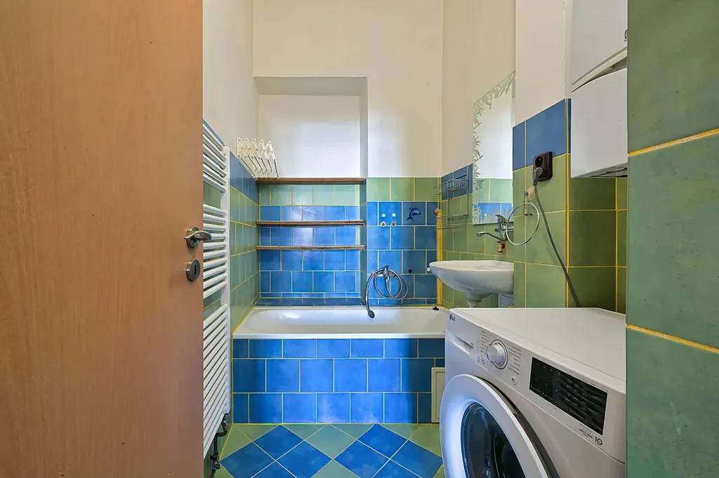 Součástí bytu je i sklepní kóje o rozloze 11m² a také možnost užívání společné zahrádky ve vnitrobloku, do které je přístup pouze z domu.