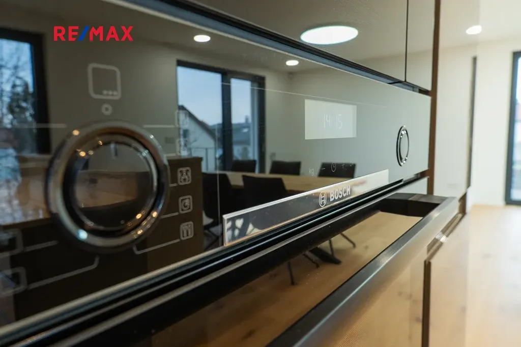 Byt je vybaven novou kuchyňskou linkou na míru včetně spotřebičů Bosch, klimatizací, zabezpečovacím alarmem a vestavěnými skříněmi. Součástí pronájmu je sklepní kóje a jedno venkovní parkovací stání. V domě je k dispozici společná místnost s pračkou a sušičkou.