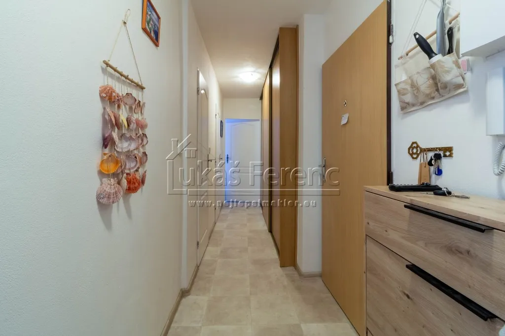 Vestavěné skříně, kuchyňská linka včetně el. trouby se sklokeramickou varnou deskou, digestoř, myčka nádobí, koupelna s rohovou vanou, další nábytek může být ponechán v bytě kompletní.