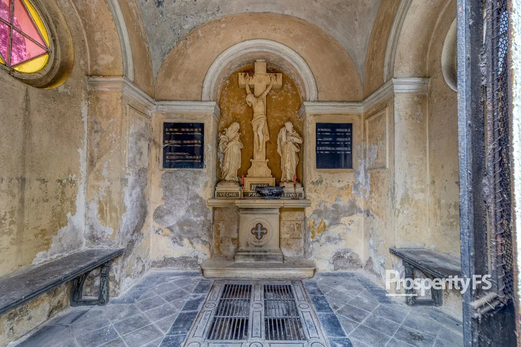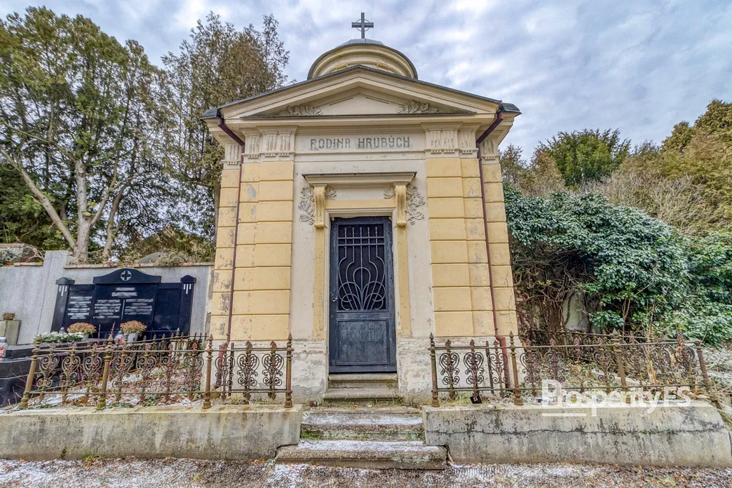 Nabízíme k prodeji výjimečnou historickou hrobku rodiny Hrubých, nacházející se na hřbitově v Kralupech nad Vltavou. Tato honosná hrobová kaple představuje jedinečnou ukázku architektury své doby a prošla důkladným vyčištěním. Ostatky původních členů rodiny byly pietně přeneseny do jiného rodinného hrobu, čímž je hrobka nyní prázdná a připravena pro nové využití.