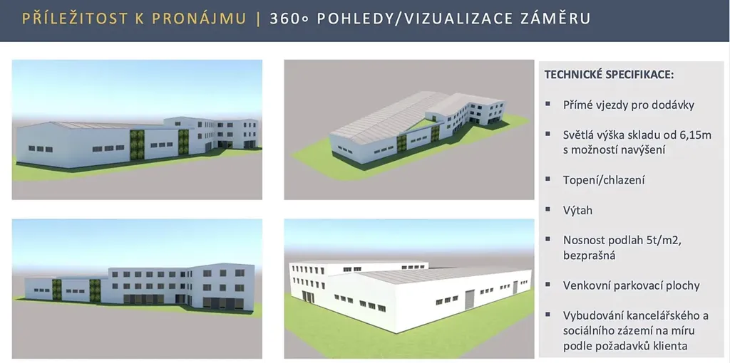- výstavba dokončena do 6-9 měsíců od podpisu nájemní smlouvy na míru podle požadavků zájemce