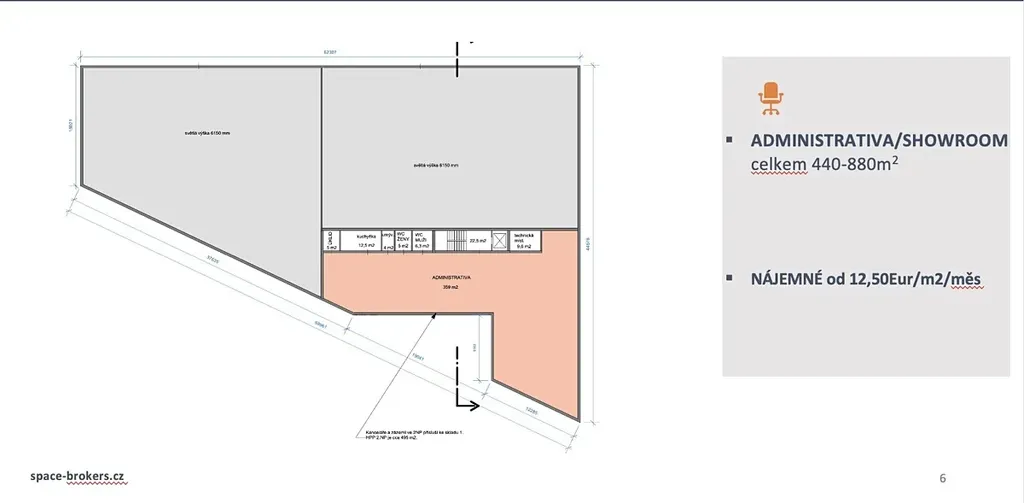 - Showroom/Administrativa - 12,50 EUR/m2/měsíc