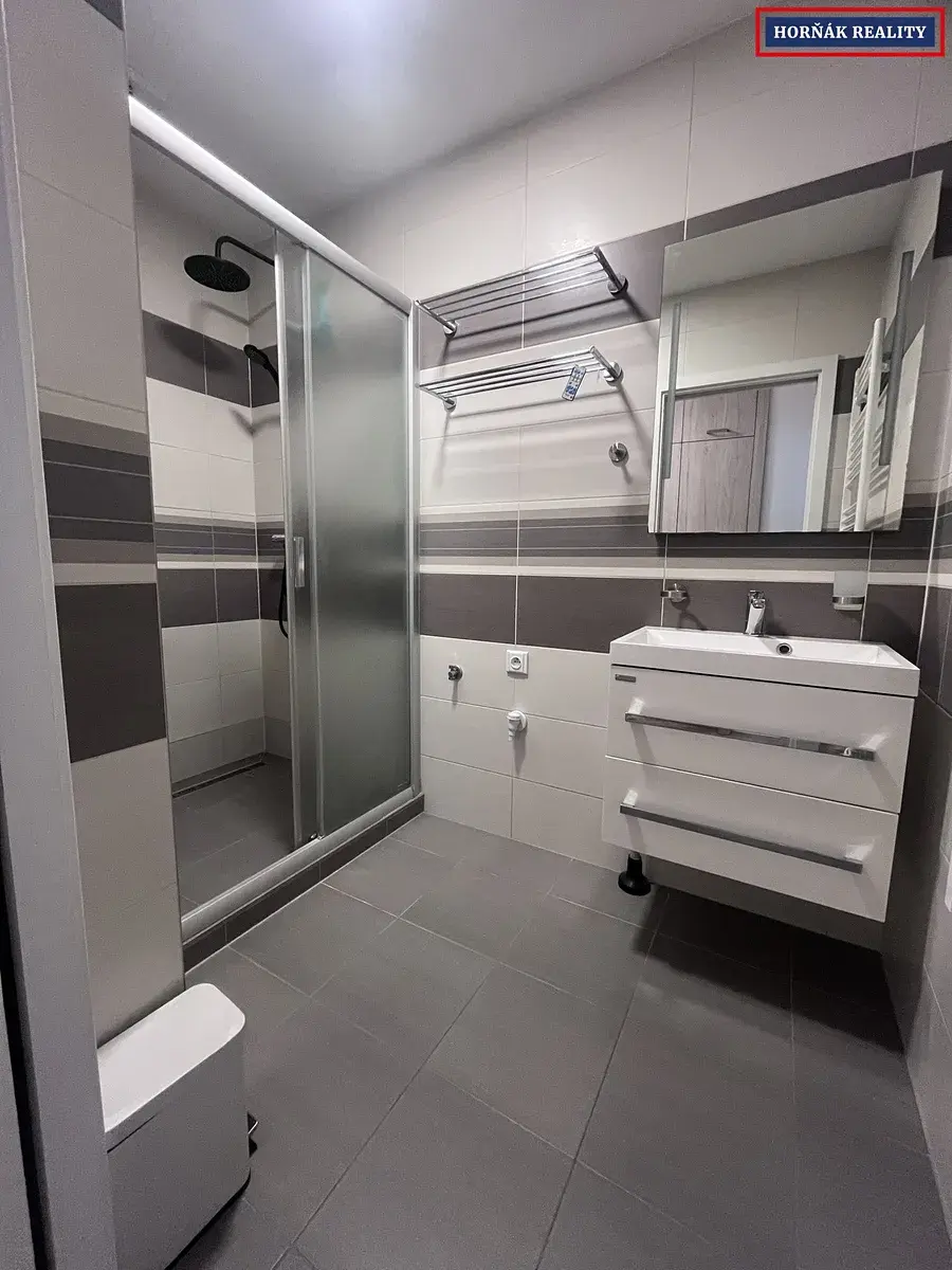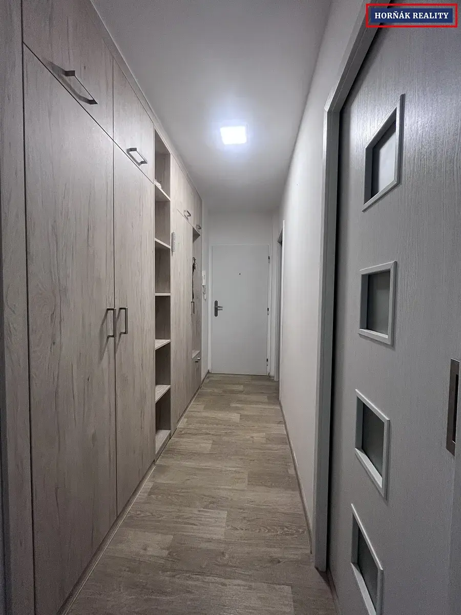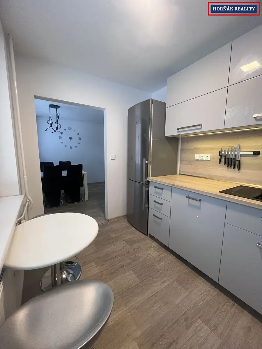 Byt se nabízí částečně zařízený - lednice, myčka, jídelní stůl, TV stůl, skříně v pokojích a předsíňová stěna.