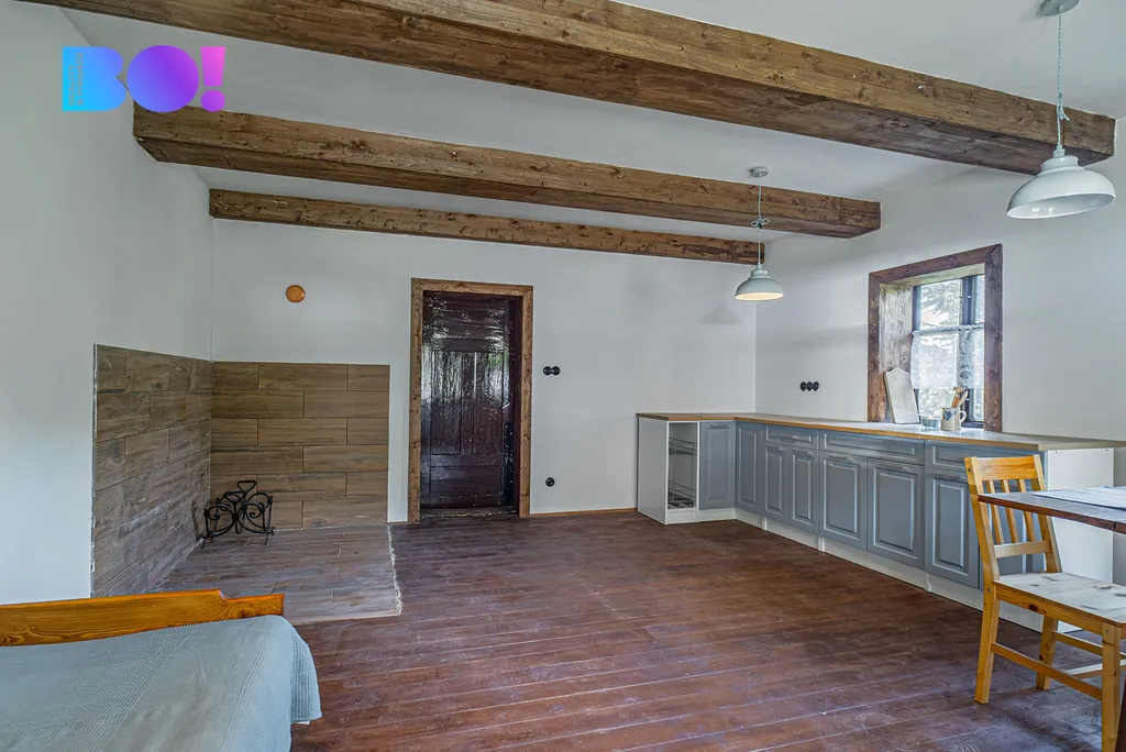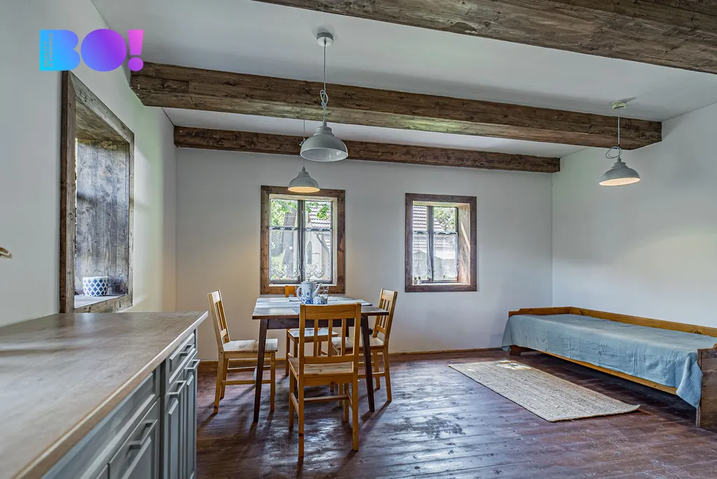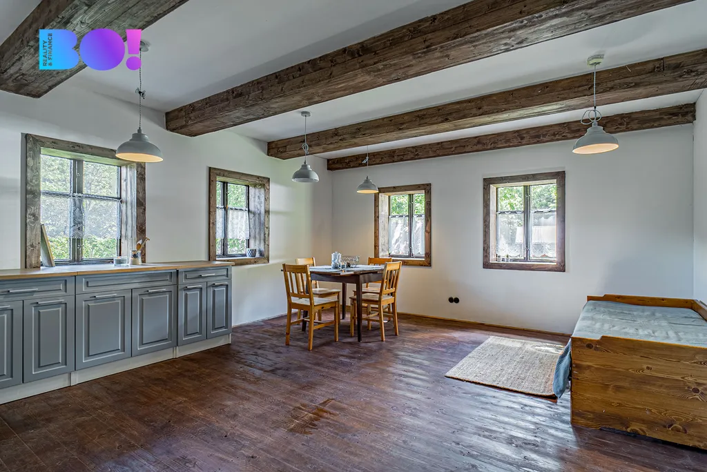 Tato roubenka nabízí možnost propojit historický charakter s moderním standardem bydlení – a přitom si užít klid a soukromí na samotě s dojezdem po asfaltové silnici, která je sjízdná a udržovaná i v zimě.