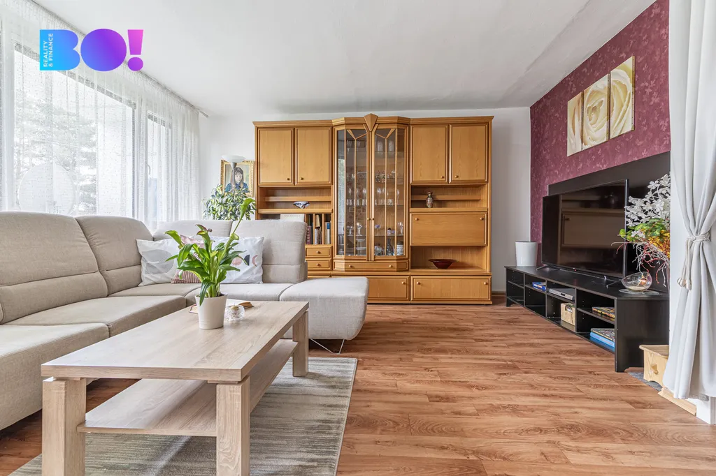 Dispozice bytu zahrnuje čtyři pokoje a kuchyň, světlý a prostorný obývací pokoj, tři ložnice a jídelna. Součástí bytu je také šatna, která poskytuje dostatek úložného prostoru. Byt je vybaven moderními prvky pro komfortní bydlení.