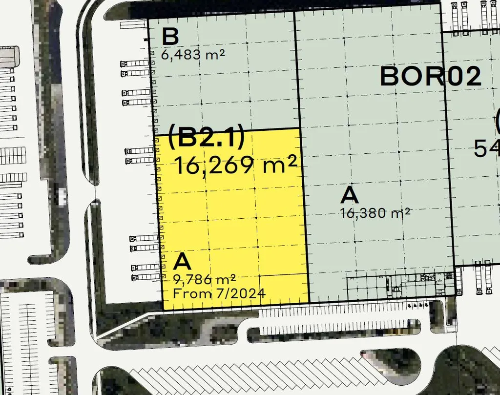- samostatné industriální prostory o výměře 9786 m²,