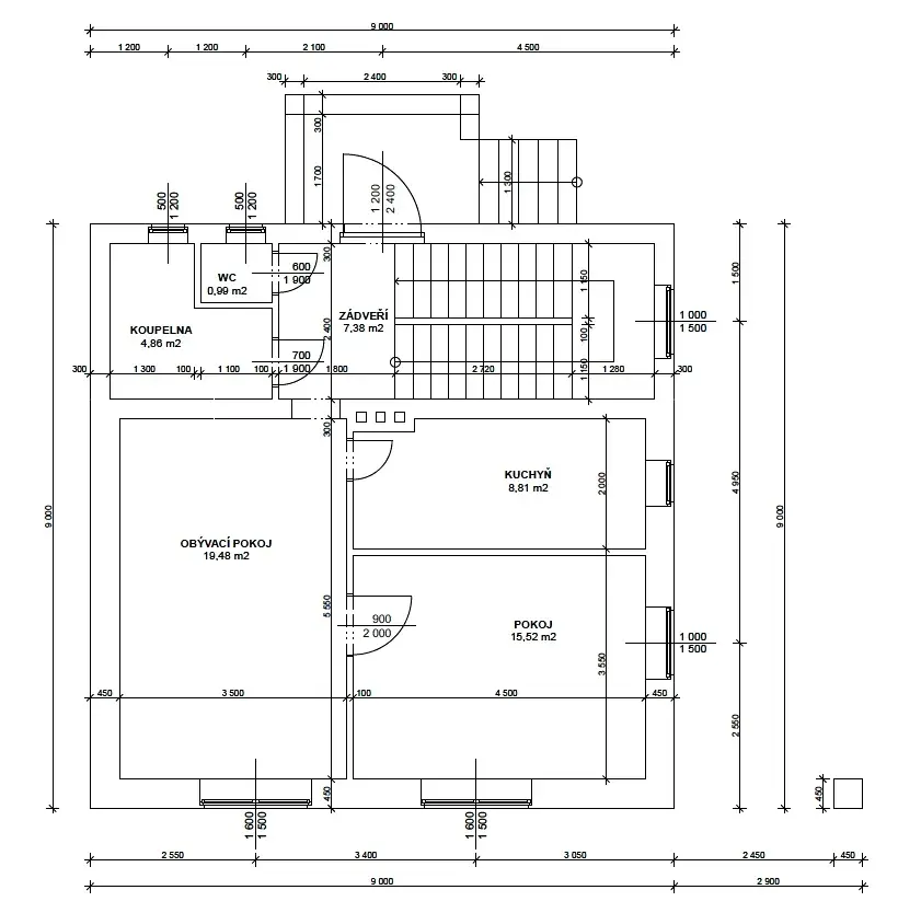 - Pozemek: Prostorný slunný pozemek o rozloze 821 m².