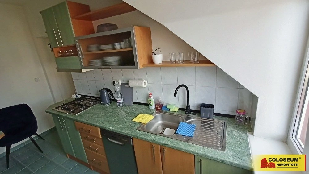 Dispozice bytu zahrnuje obývací pokoj se vstupem na balkon, samostatnou ložnici, kuchyň s jídelním koutem a plně vybavenou kuchyňskou linkou včetně myčky, sporáku a lednice, koupelnu s vanou, umyvadlem a pračkou a samostatné WC. Díky praktickému uspořádání nabízí byt dostatek soukromí i prostoru pro pohodlné bydlení jednotlivce, páru nebo malé rodiny.