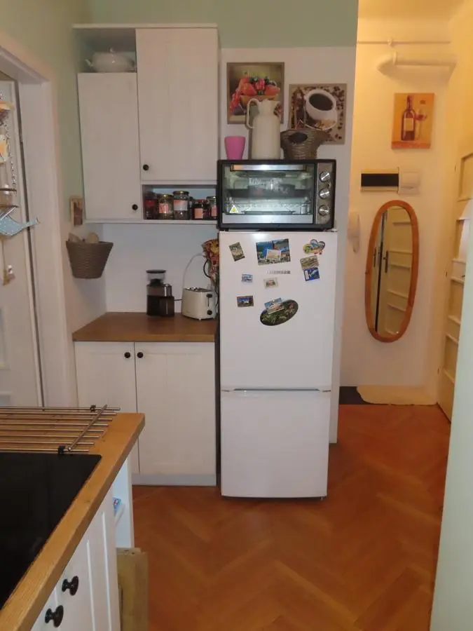 Samotný byt je situován ve zvýšeném přízemí domu s okny na úrovni 1.patra a orientací do zahrady, která zajišťuje dostatek soukromí a klidu. Byt prošel citlivou rekonstrukcí, při které byly vyměněny veškeré rozvody v bytě, instalováno ústřední plynové vytápění (plynový kondenzační kotel je umístěn přímo v bytě). Na podlaze jsou dřevěné parkety. Okna v celém domě byla vyměněna.