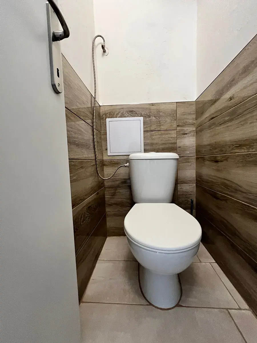 Ohřev teplé vody je zajišťován elektrickým bojlerem, který je umístěn v koupelně.