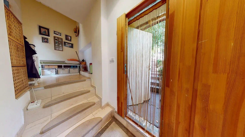 Po pravé straně chodby vedou schody do horního patra, kde se nachází další pokoj s krbem a koupelnou. Mezi oběma patry je vstup do okrasné zahrady, kde si můžete užívat příjemného venkovního posezení.