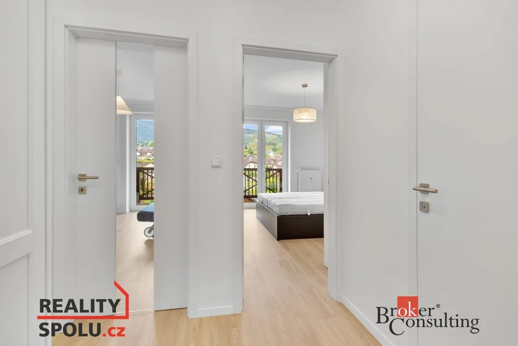 Nabízíme k pronájmu jedinečný byt 2+kk o výměře 51 m² ve 4. podlaží výjimečného domu alpského stylu, nacházejícího se v klidné a vyhledávané lokalitě pod Ještědem – ulice Talínská, Liberec.