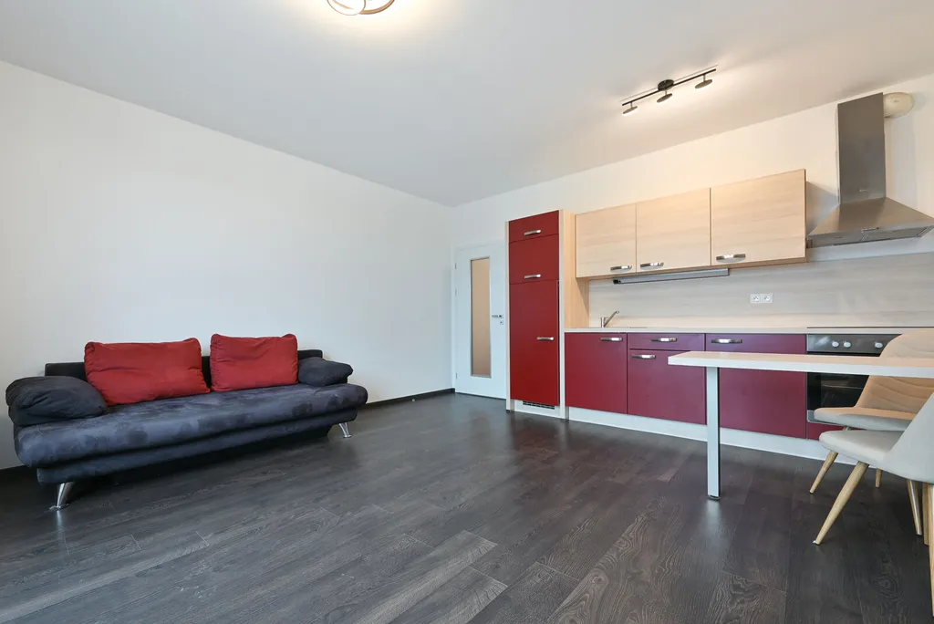 Byt se nachází v 8. patře, je kompletně zrekonstruován a má dva oddělené pokoje. Z prostorné chodby se dostanete do první místnosti s plně vybavenou kuchyňskou linkou s vestavěnou lednicí, sklokeramickou desku, elektrickou troubou a digestoří. K dispozici je také jídelní set, televizní stolek a pohodlná pohovka, která vytváří příjemný prostor pro posezení.