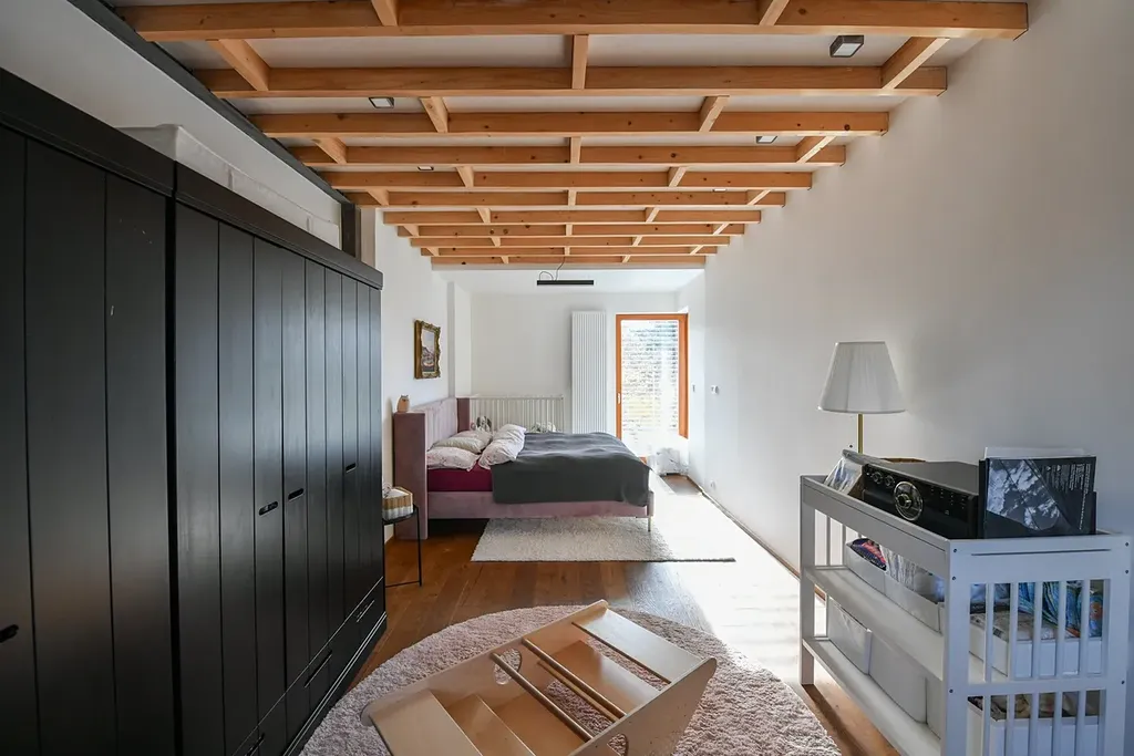 2. patro: prostorná ložnice s výhledem do klidného vnitrobloku, koupelna se sprchovým koutem a toaletou