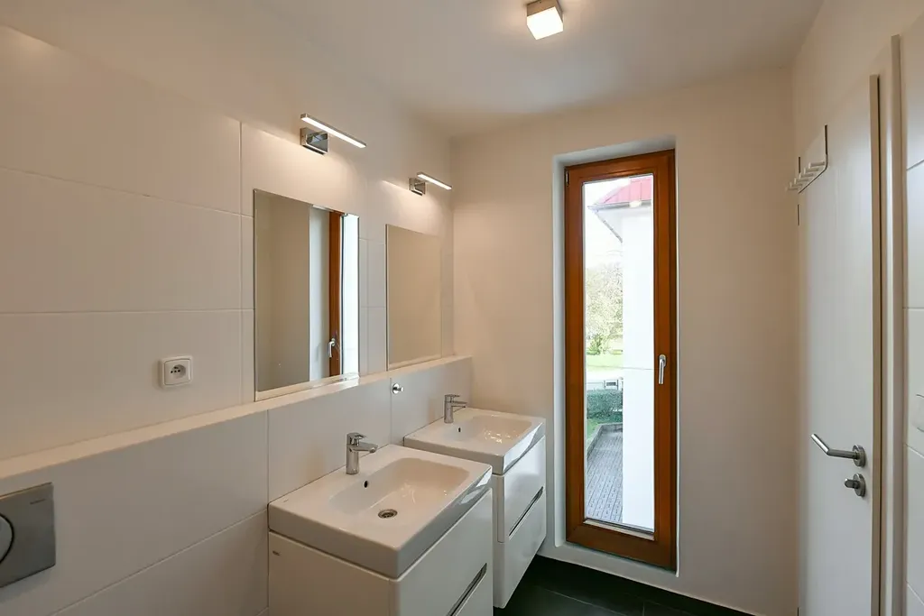 1. patro: dvě ložnice, koupelna s vanou a toaletou