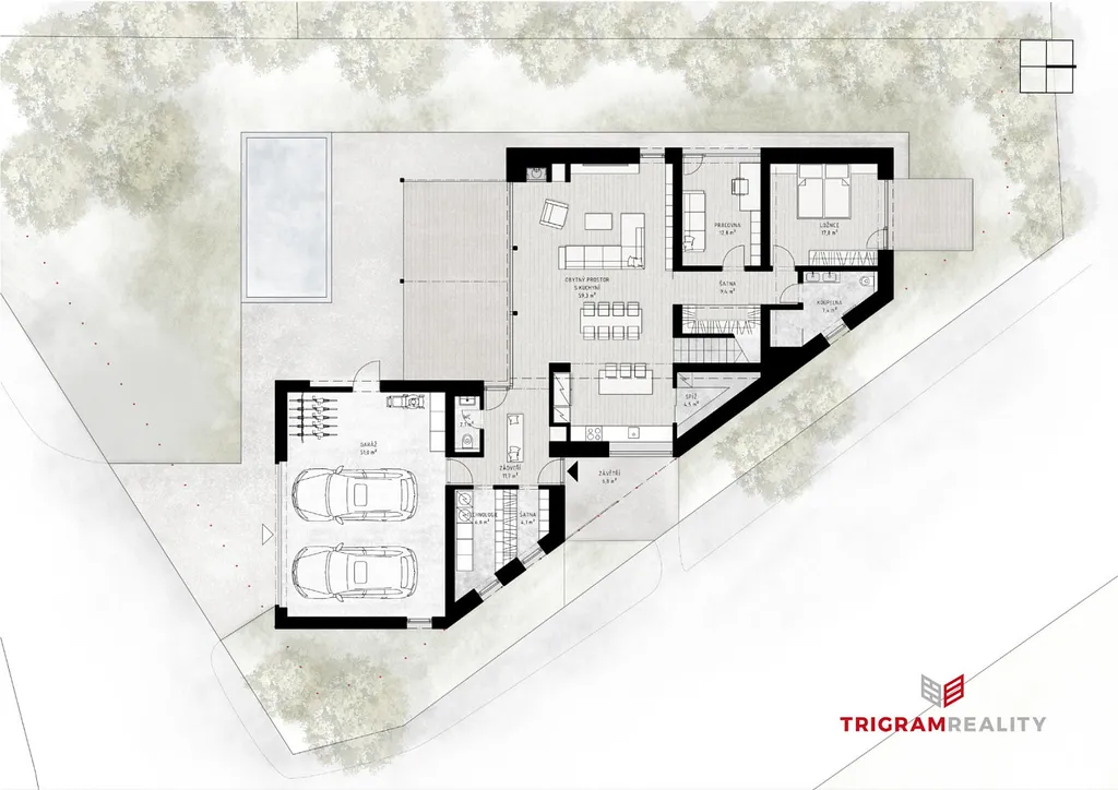 Na pozemku o rozloze 753 m² se na jaře začne stavět unikátní zděný dům o dispozici 6+kk s prostornou garáží pro dvě auta a celkové užitné ploše 255 m². Tento projekt je velmi povedený, vkusný a citlivě zasazen do okolní zástavby a blízké přírody.