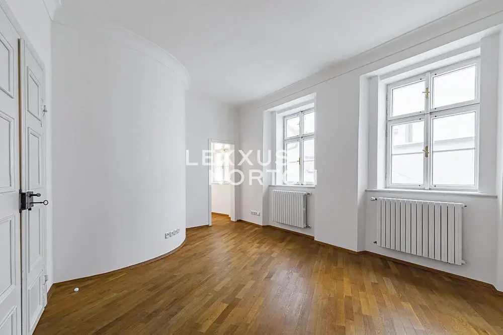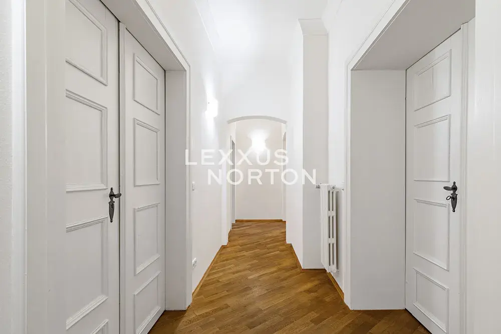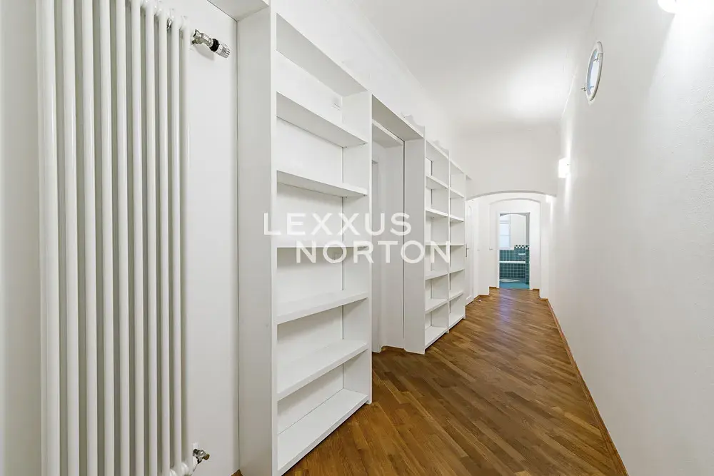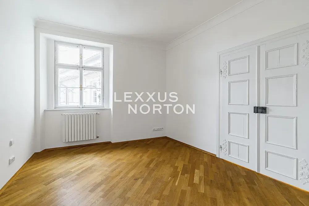 Luxusní nezařízený byt ve 3. nadzemním podlaží s velkou terasou. Interiér je vybaven parketami a originální italskou dlažbou. Byt se nachází v nádherné historické budově po kompletní rekonstrukci.