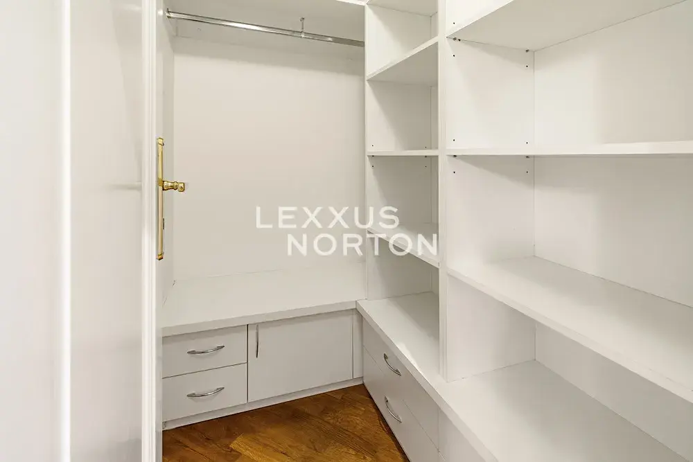 Byt se nabízí nezařízený a je vybaven novými spotřebiči, konkrétně lednicí s mrazákem, myčkou a pračkou se sušičkou; součástí vybavení je dále trouba a sporák. K dispozici jsou dvě koupelny - jedna s vanou, sprchovým koutem, toaletou a bidetem, druhá s vanou, toaletou a bidetem. Na chodbě se nachází vestavěná knihovna. Součástí vybavení je dále sklep.