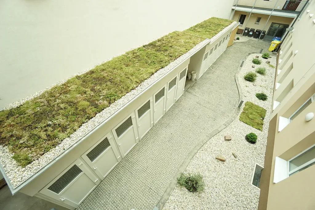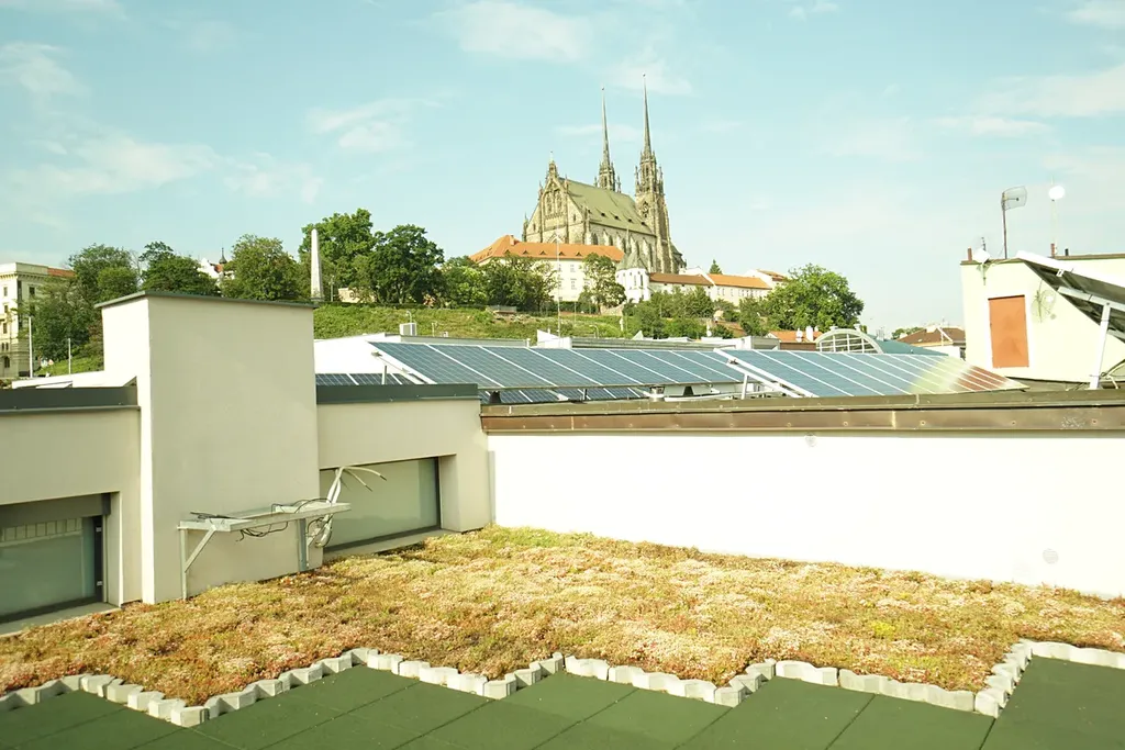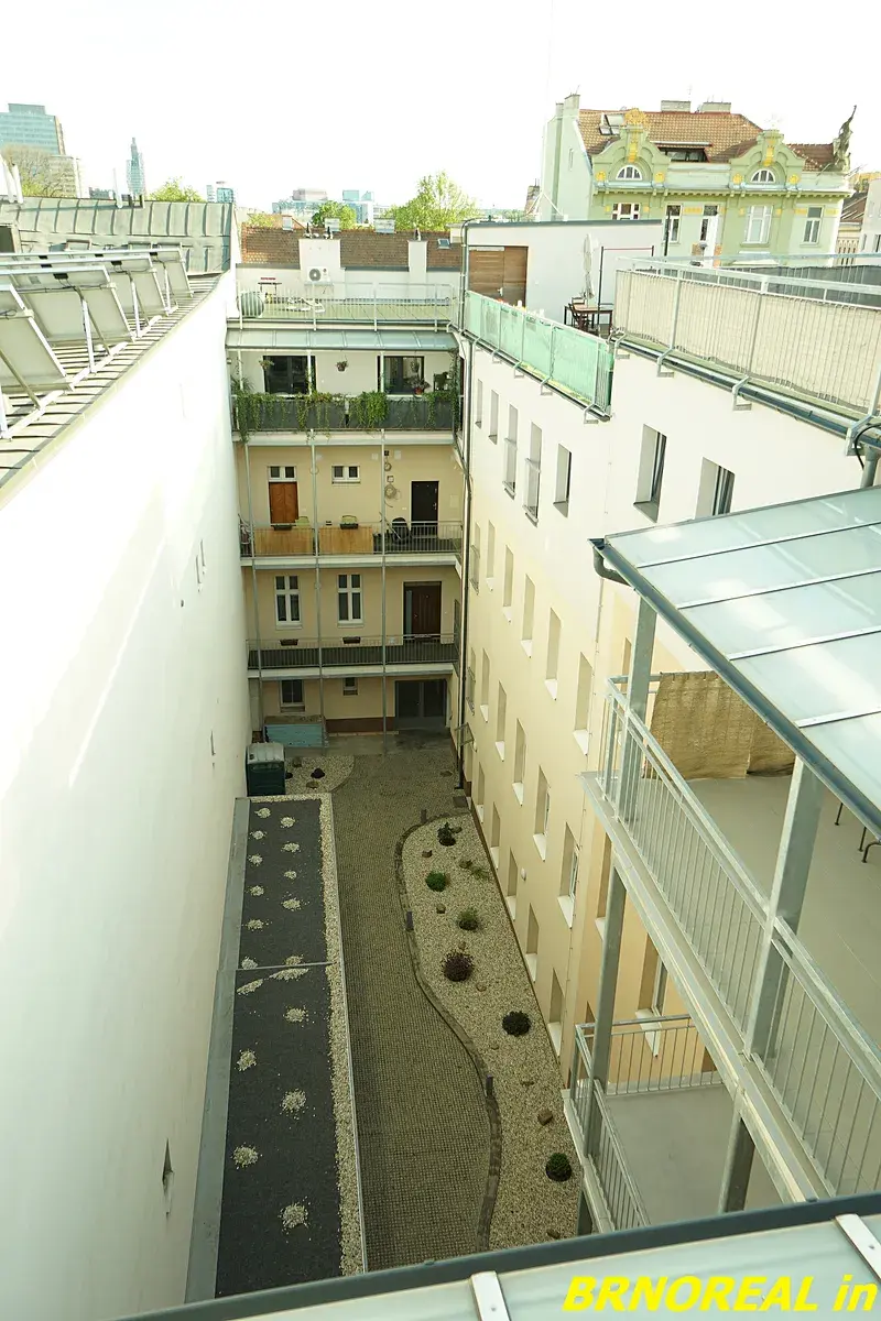 Jednotka disponuje možností užívání společné terasy umístěné na střeše bytového domu, z které je možno pozorovat nerušeně ruch velkoměsta. Terasa je ideálně stvořená ke grilování, opalování a relaxu s nádherným panoramatickým výhledem na nejen dvě největší dominanty města Brna – Katedrálu svatého Petra a Pavla, obklopenou příjemnou parkovou zelení Denisových sadů a hrad Špilberk.