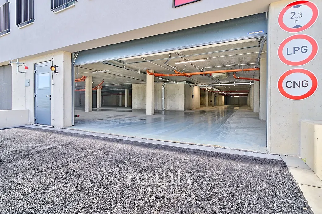 Vjezd do garáže je z ulice Palliardiho, velikost stání je od 16,1 m2 do 17,4 m2.