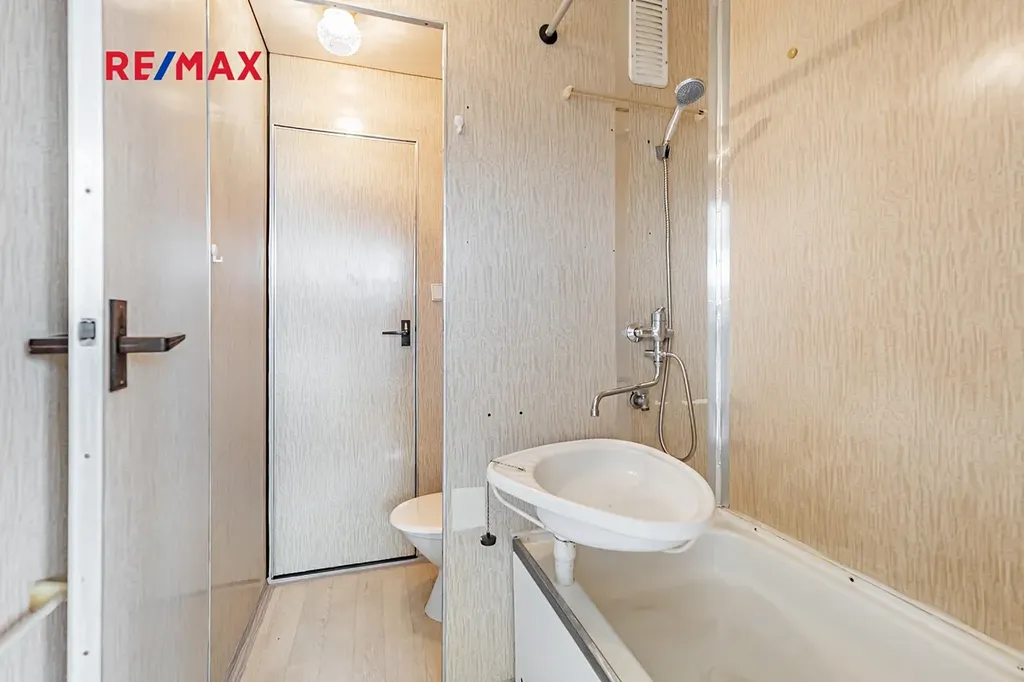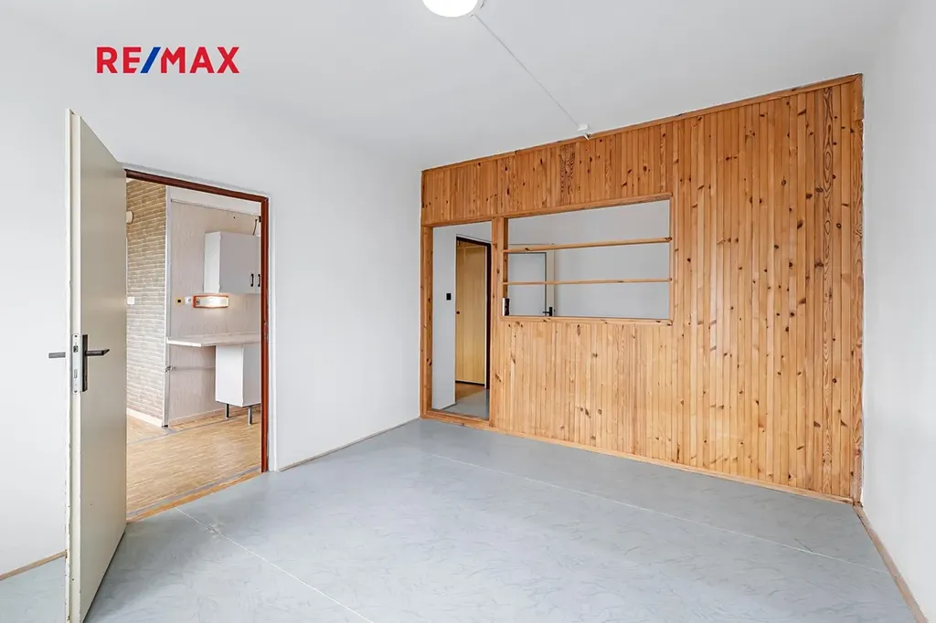 Nemovitost se nachází v sedmém patře panelového domu s výtahem. Byt Vám nabídne prostornou předsíň, koupelnu s vanou, toaletu a spolu s tím jednu obytnou místnost šikovně přepaženou příčkou, která Vám dodá na pocitu dvou místností, z nichž jednu můžete využít jako ložnici. Kuchyně samozřejmě nechybí. Ta je spolu s obývacím prostorem orientovaná na jižní stranu s pěkným výhledem, díky čemuž je byt po celý den přirozeně světlý, aniž by slunce svítilo přímo do oken. A pokud byste potřebovali více úložných prostor, tak v přízemí domů najdete sklepní kóji k tomu určenou. Rozmístění jednotlivých místností a jednotlivé výměry lze vidět na přiloženém půdorysu.