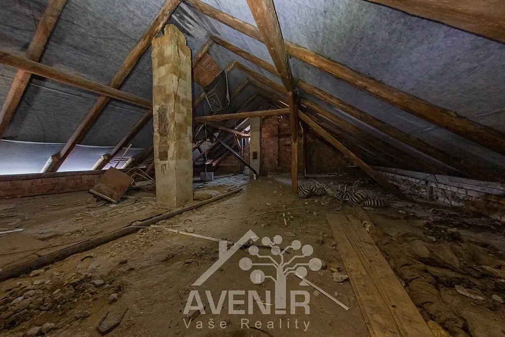 Dům disponuje rozsáhlou půdou, která nabízí možnost vybudování podkrovního bydlení a tím výrazně navýšit obytnou plochu. Součástí nemovitosti je také samostatná část domu, původně využívaná jako vejminek – dva pokoje oddělené průjezdem. Tento prostor je ideální pro vícegenerační bydlení, samostatné bydlení pro starší děti, případně jako komerční nebo podnikatelské prostory.