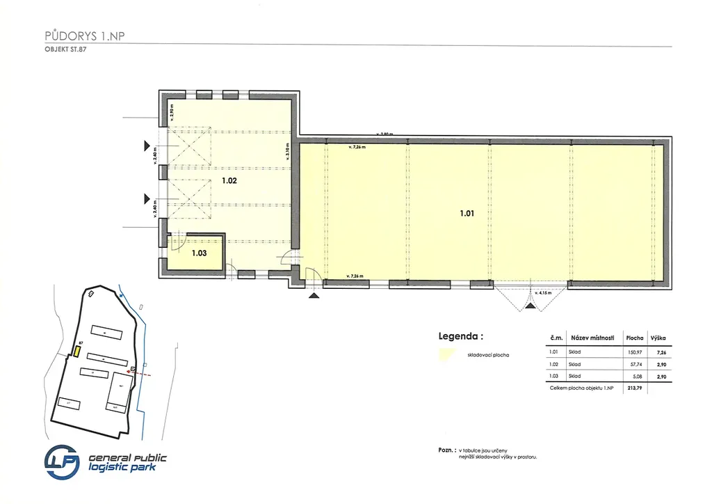 Tento přízemní sklad nabízí užitnou plochu o velikosti 214 m² s bezbariérovým přístupem, což usnadňuje manipulaci s materiály a zbožím jak na podnikatelské, tak každodenní úrovni. Prostor je částečně vybaven, což umožňuje flexibilitu při zařizování a organizaci skladu podle individuálních potřeb nájemce. Díky bezproblémovému přístupu k parkování a výhodné dopravní dostupnosti, která zahrnuje dálnici, silnice, MHD a autobus, je toto místo ideálně situováno pro snadný logistický provoz.