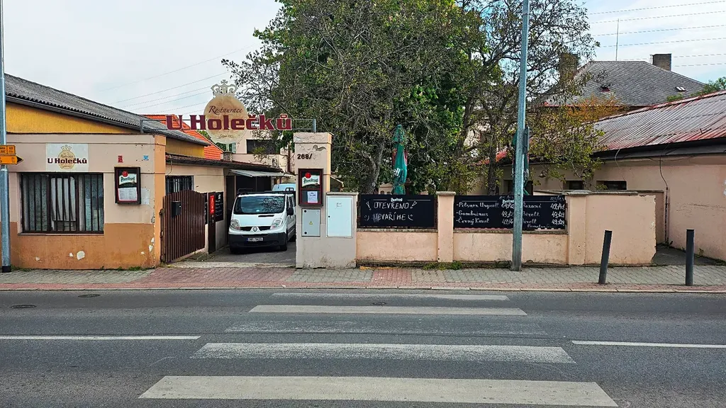 Prostorný objekt, ve kterém je mimo jiné umístěna zavedená kultovní restaurace U Holečků. Dále se v objektu nalézají provozní místnosti a prostory pro bydlení, objekt je podsklepen. Restaurace je pronajatá do 9/2027, měsíční nájemné činí 40.000,- Kč. Stavba vedena s číslem popisným se způsobem využití stavba občanského vybavení.